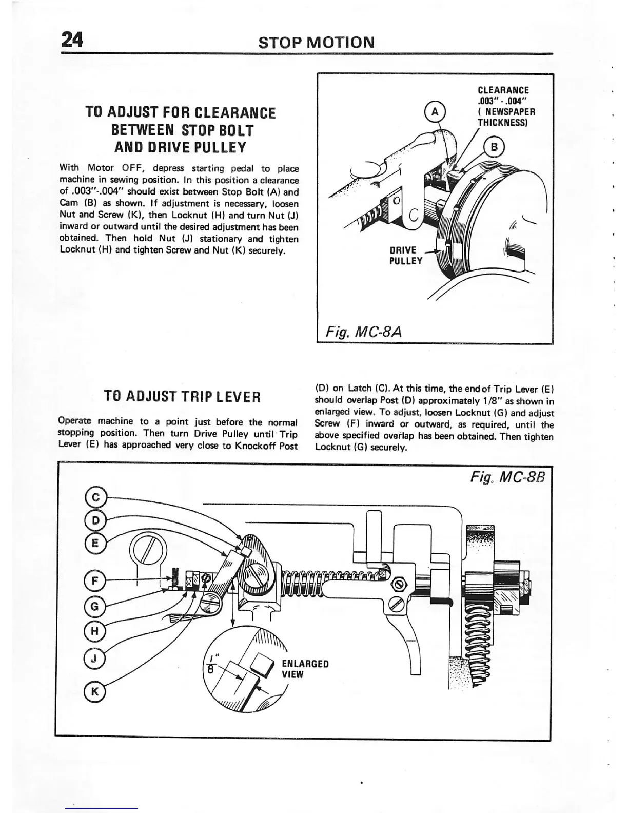 enlarged view. To adjust, loosen Locknut (G)and adjust