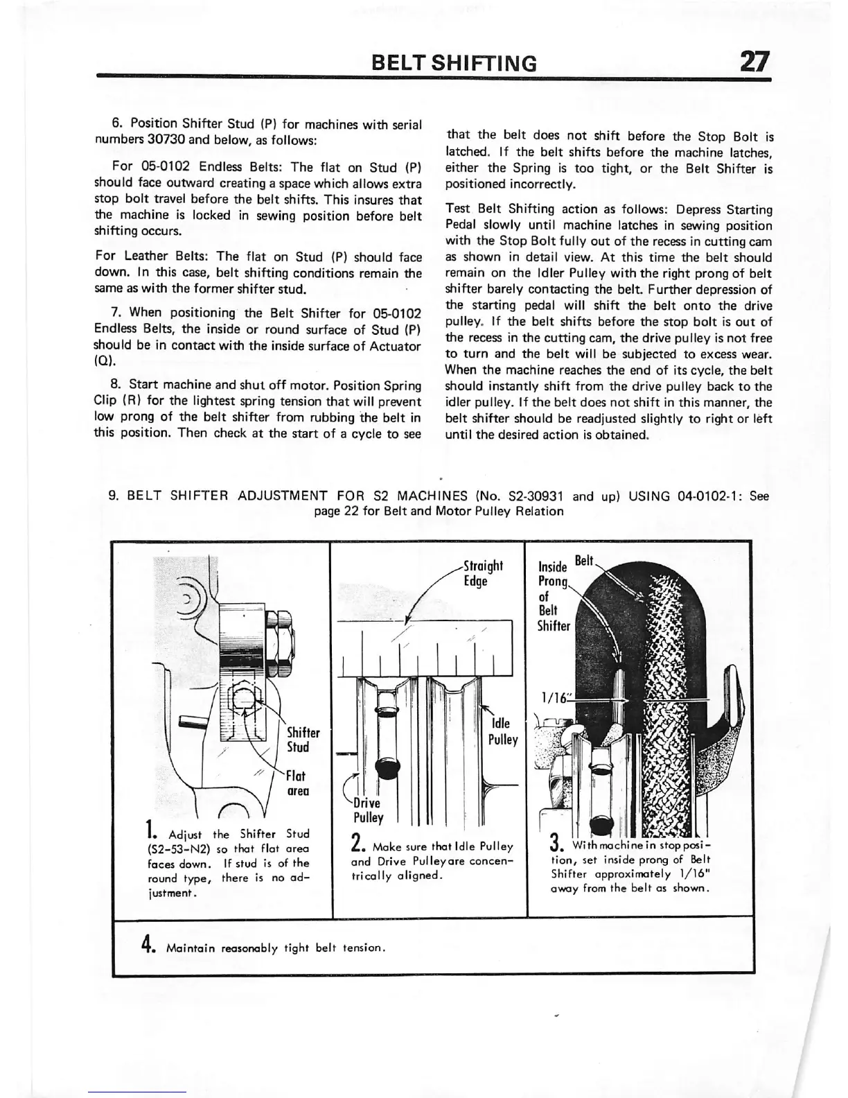 9. BELT SHIFTER ADJUSTMENT FOR S2 MACHINES {No. S2-30931 and up) USING 04-0102-1: See