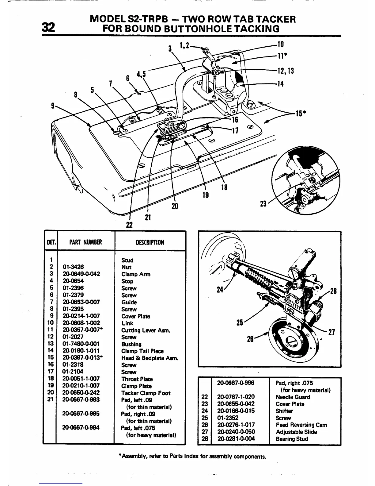 *Assembly,refer to Parts Index for assemblycomponents.