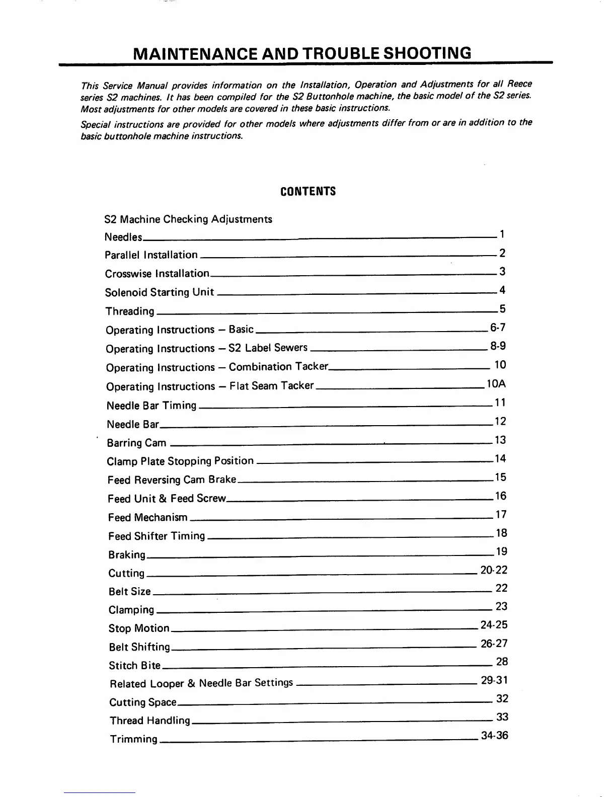 Service Manual provides information on the Installation, Operation and Adjustments for all Reece