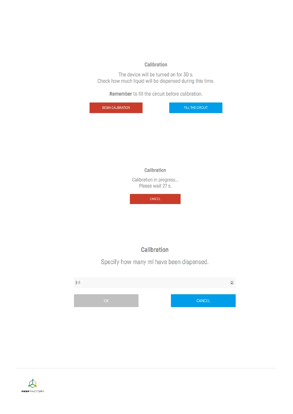 poured during the process. During calibration, the device activates the pump for 30 seconds