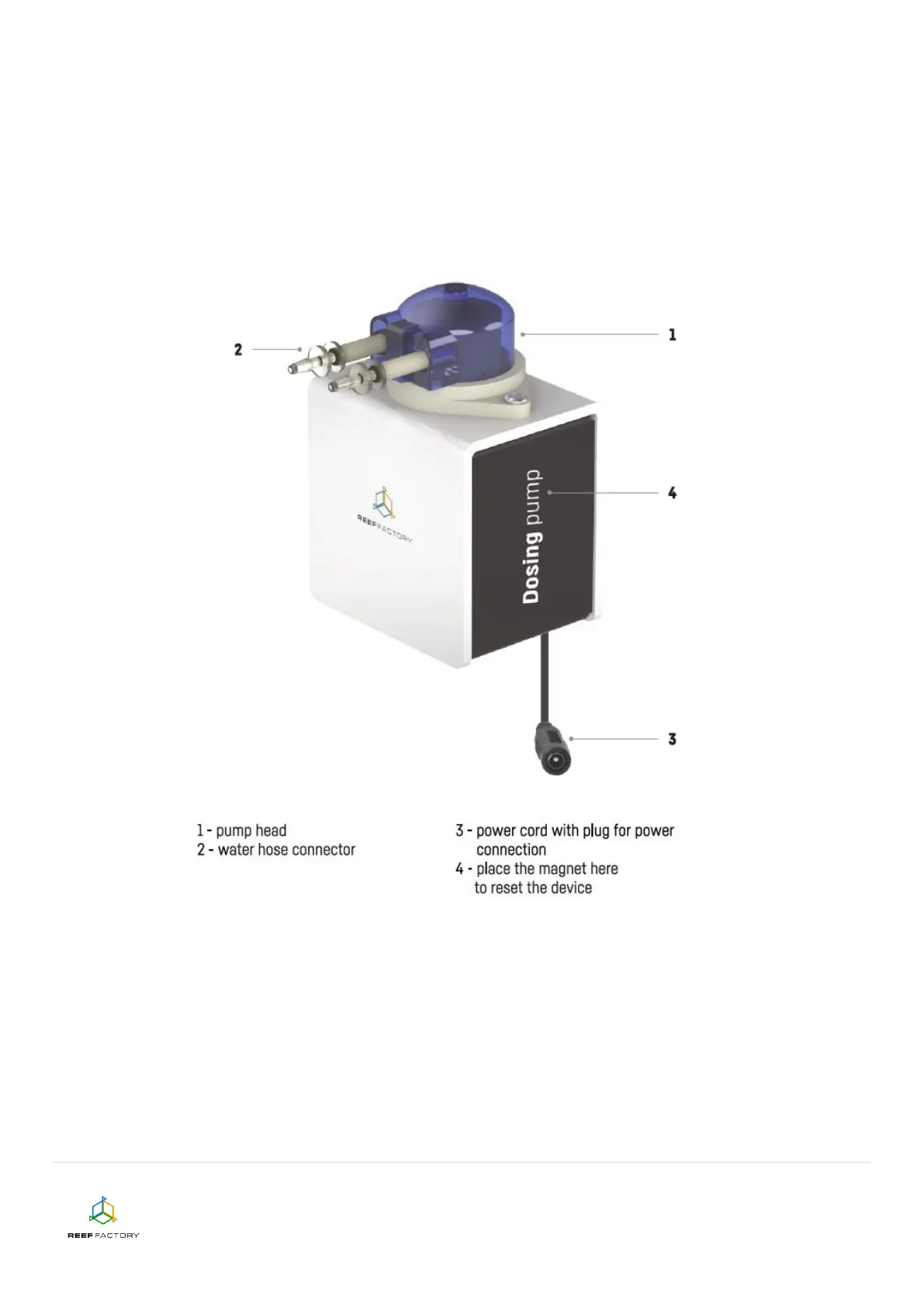 Apart from the Dosing pump device itself, the package contains the following elements: a pump, a