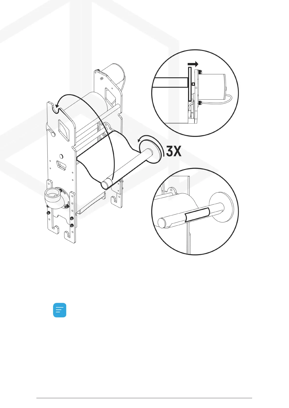 Install the take-up reel in place and press down on the motor pin.