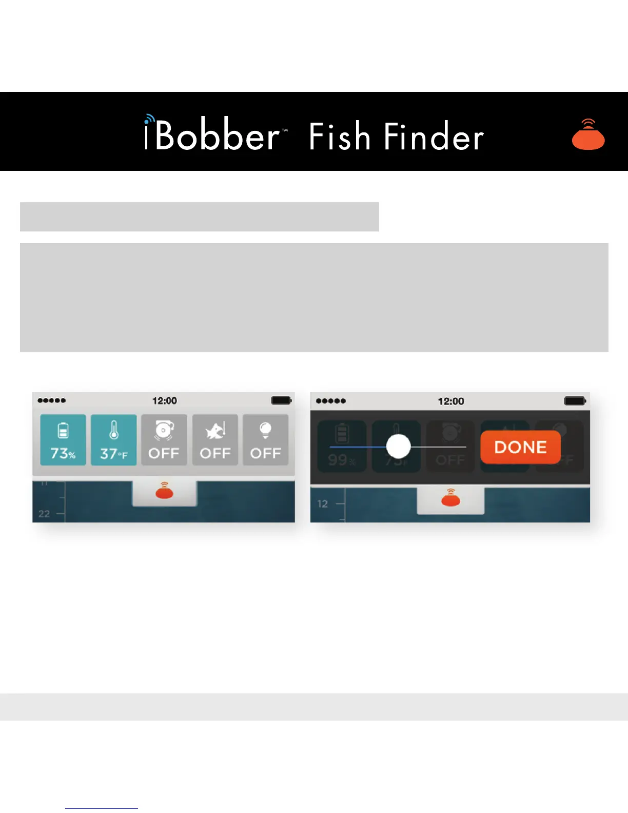 Sonar icon and the dashboard opens to reveal (from L to R) iBobber Battery