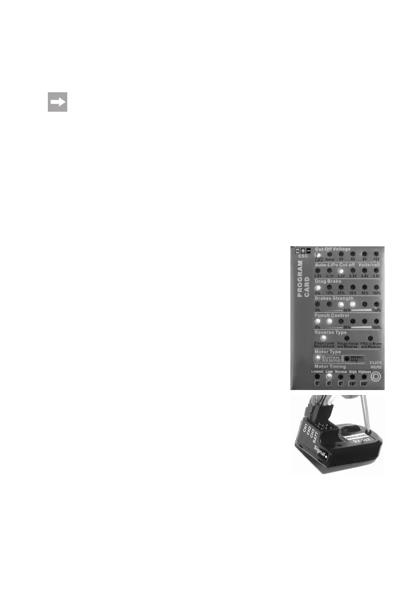 Use the enclosed programing card to change various settings of the speed controller easily. For this, two fully charged