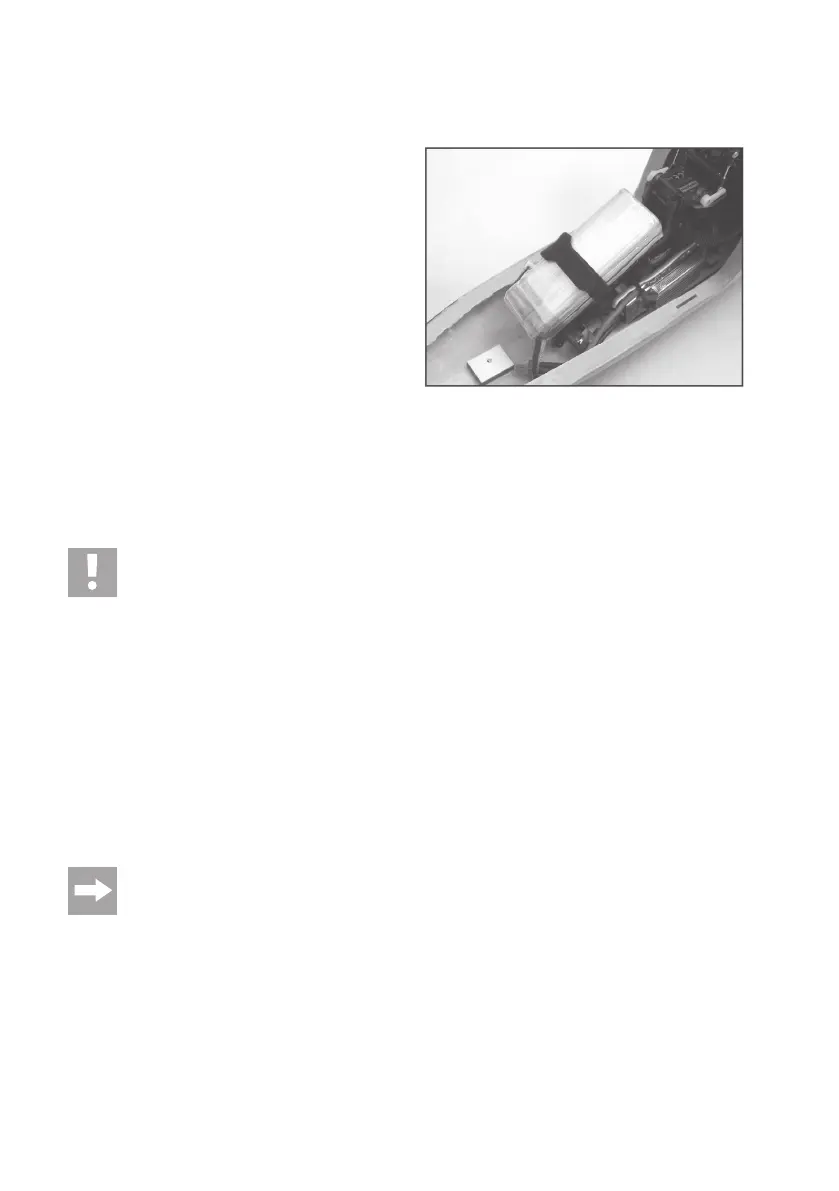 helikopter moet nu horizontaal in evenwicht zijn. Indien dit niet het geval is, verschuift u de vliegaccu iets. Belangrijk!