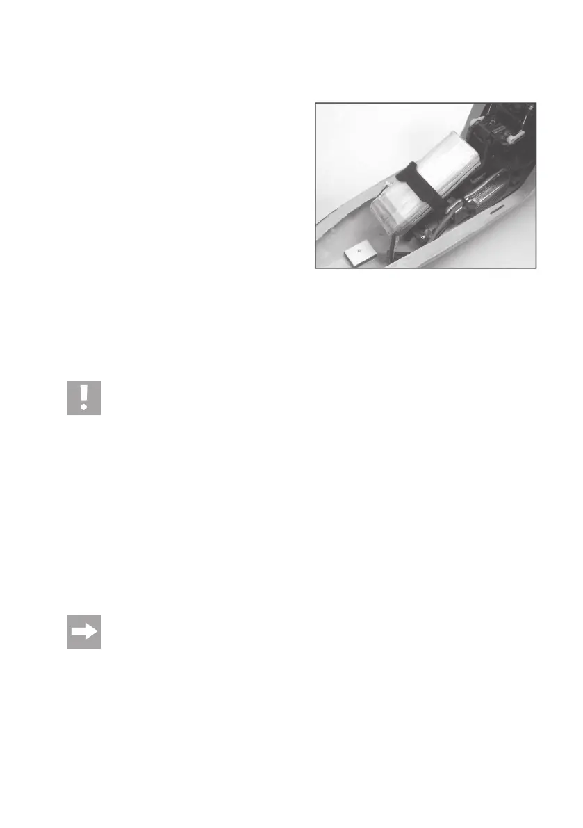 ten Klettband auf die Unterseite des Akkus und auf die Akku-