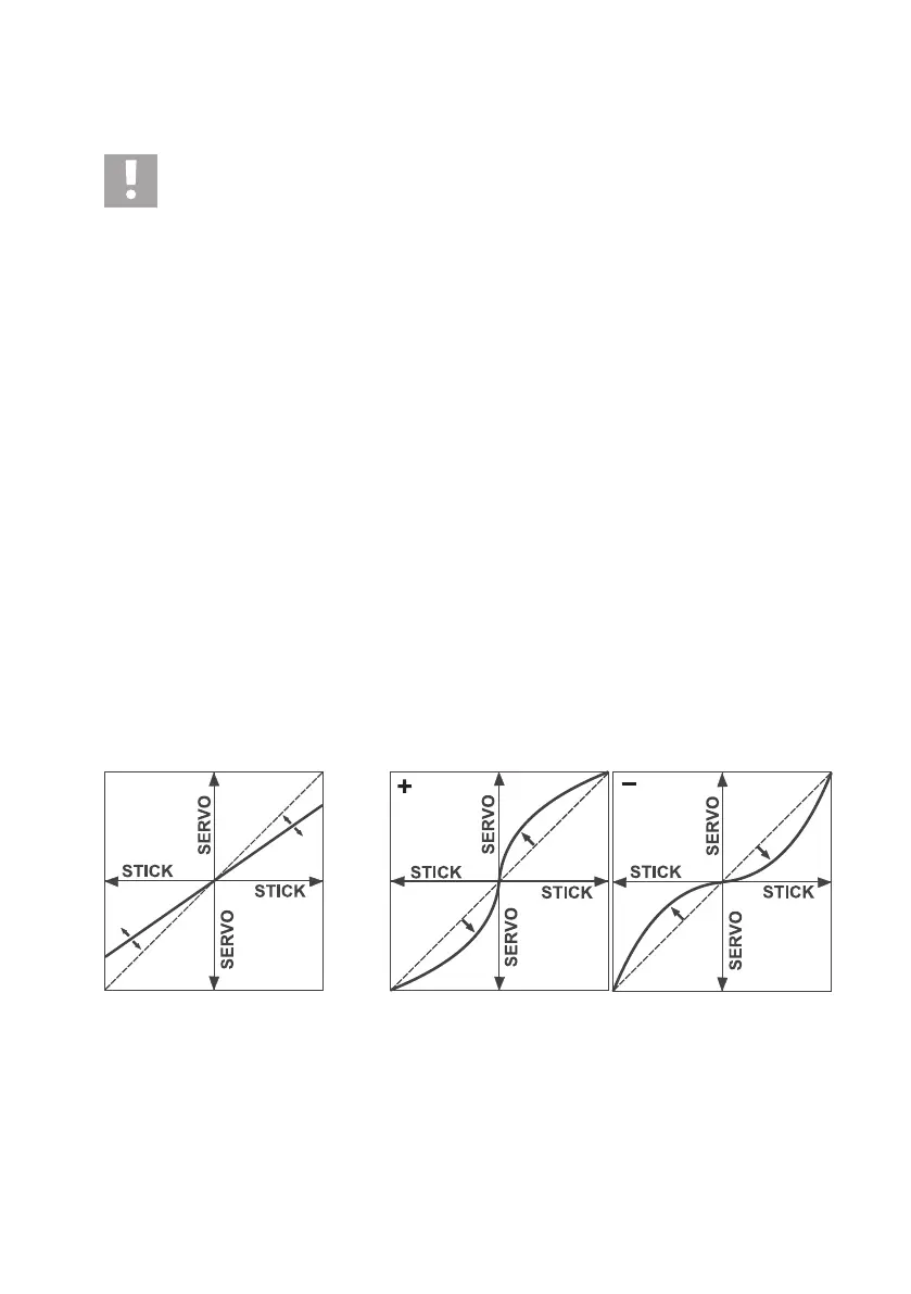 Einstellungen zum Servoweg mit “Dual Rate“ und “Exponentialfunktion“