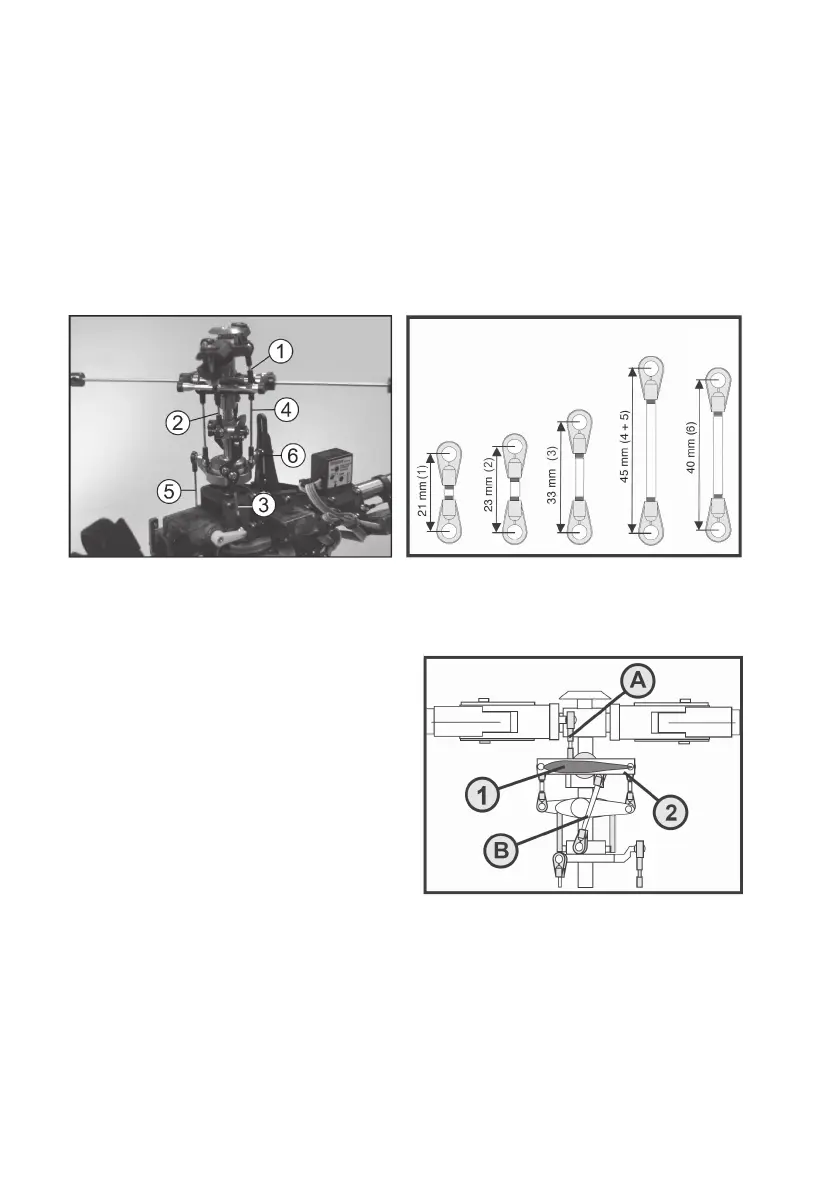 Check the linkage rods of the rotor head. For the required lengths of the individual rods (compare the numbers of ill. 13