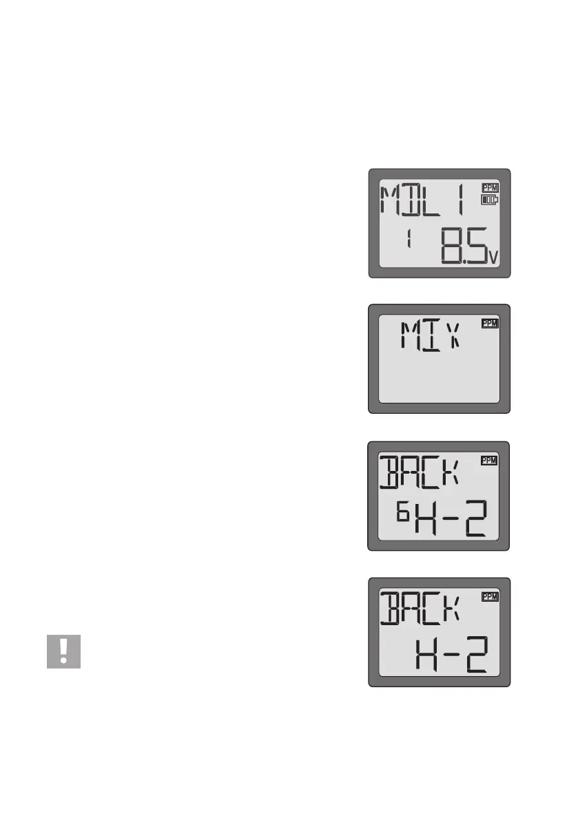 Cet affichage apparaît lors de la mise en marche de l'émetteur. En plus, un