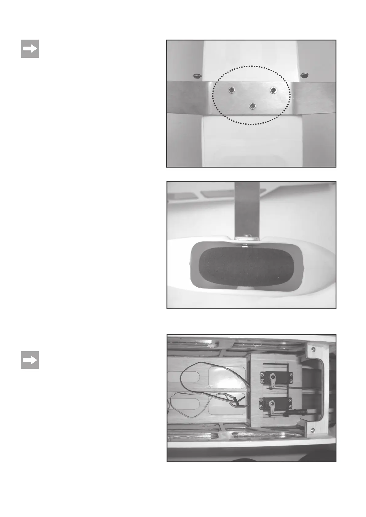 Monteer de servo’s voor hoogte- en richtingsroeren, zoals getoond in