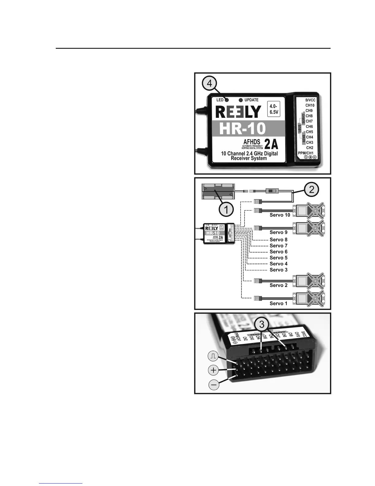"CH1" to "CH10"). The servos can also be replaced by