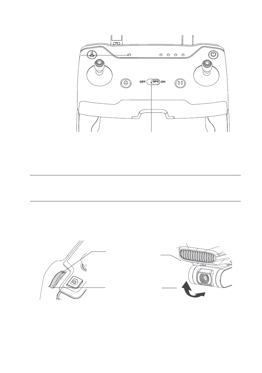 der nachfolgenden Abbildung gezeigt, drehen Sie oben links auf der Fernsteuerung am Rädchen, um den Kamera-