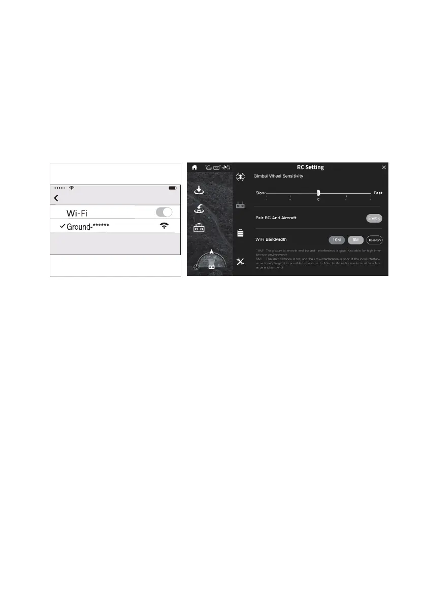 4. Öffnen Sie die Gravitii App und wählen Sie „Drone—operation interface—setting—rc setting (Drohne, Oberäche,