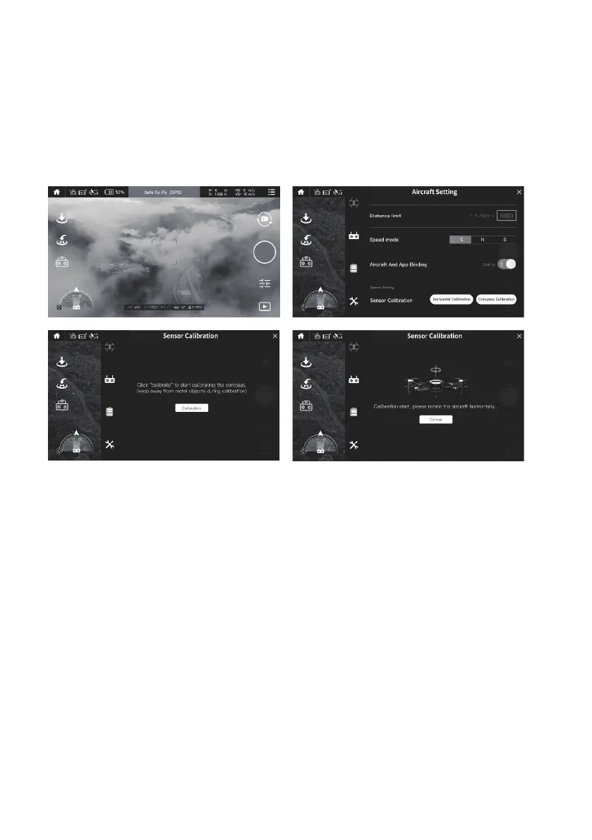 setting“ (Drohne, Oberäche, Einstellungen, Fluggeräteeinstellungen). Klicken Sie auf „Sensor calibration-
