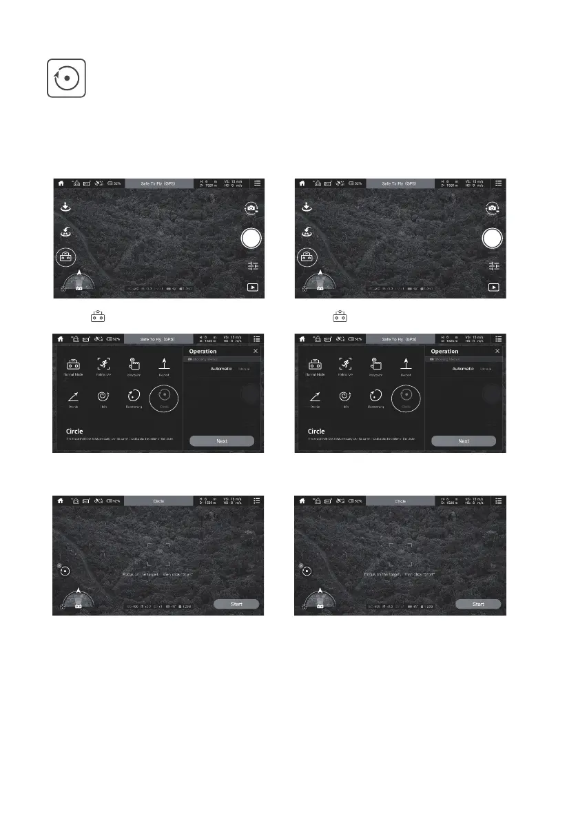 The aircraft will rotate automatically with its current position as the center of the circle, (during ight, control the aircraft
