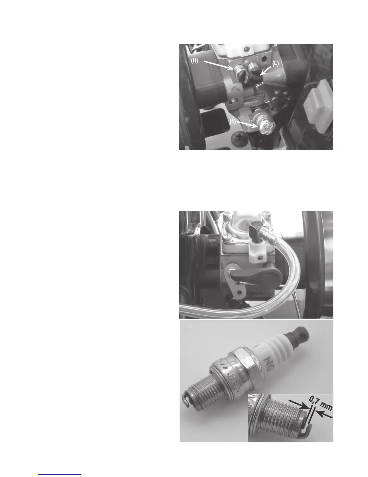Am Zustand der Zündkerze kann auf die Vergasereinstellung geschlos-
