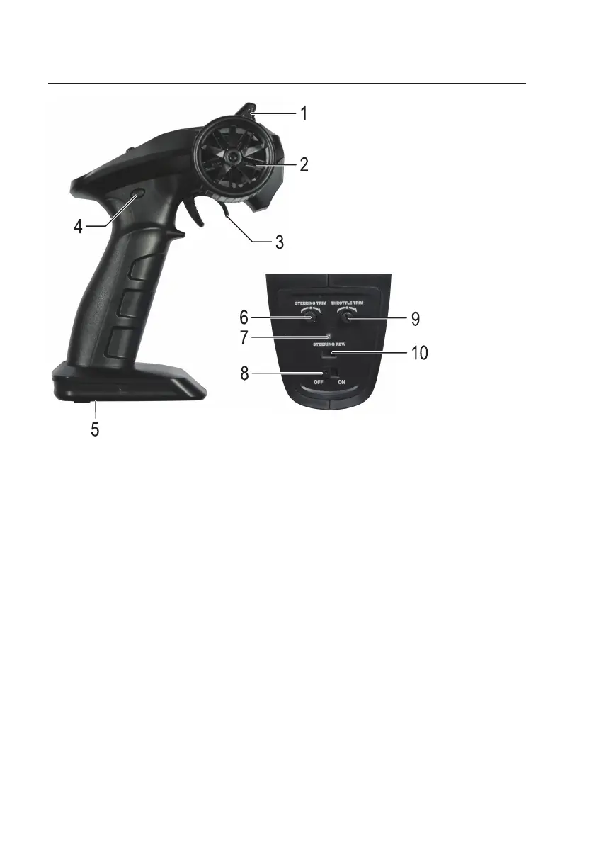 9 "THROTTLE TRIM" dial (trim for driving function/neutral position)