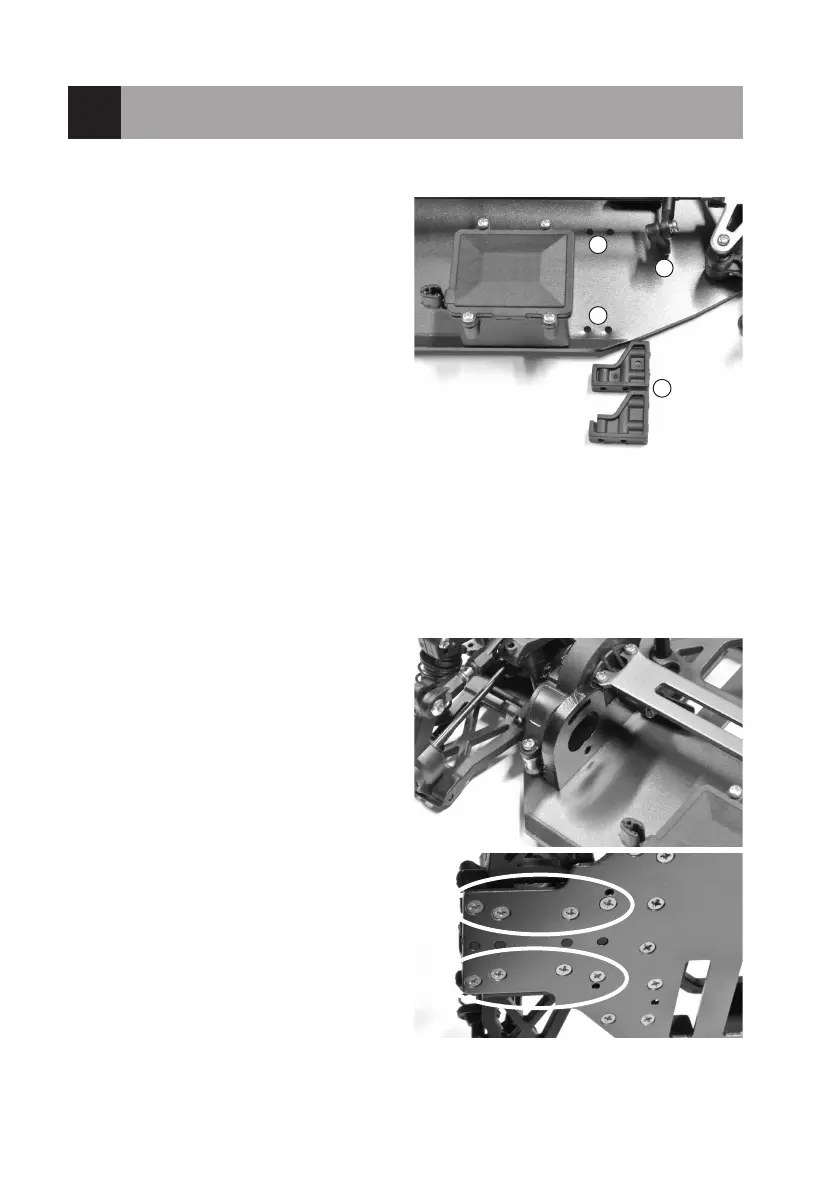 Installez le servo de direction dans le véhicule puis vissez à fond les deux supports de servo avec le servo de direction