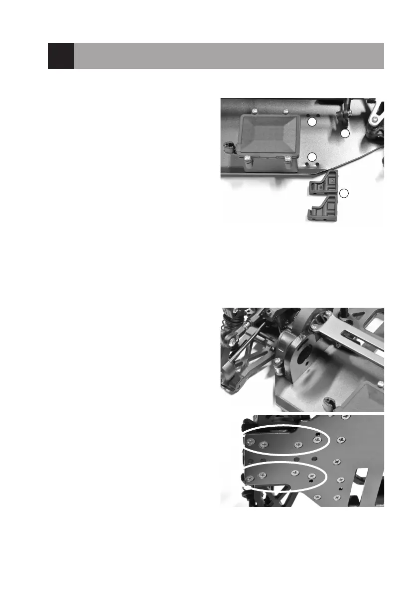 de onderkant van het chassis uit, zie cirkelmarkeringen in