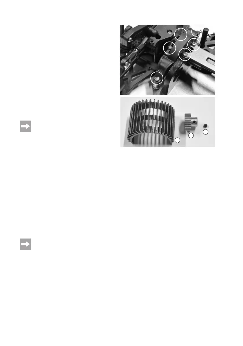 schoven maar niet wankelt. Schuif de motor met het motorritsel met zachte druk in de richting van het hoofdtandwiel.