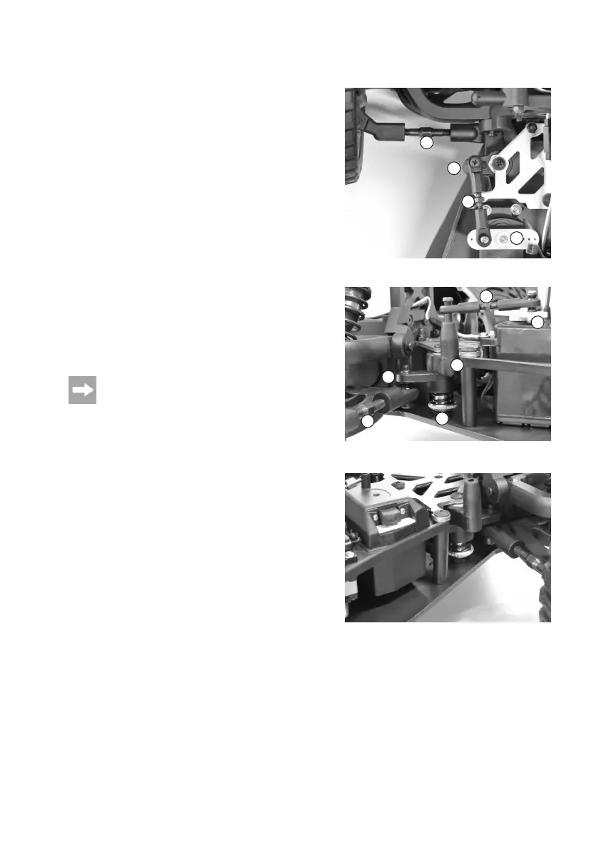 on the steering linkage (2) and on the upper arm (3) of the servo