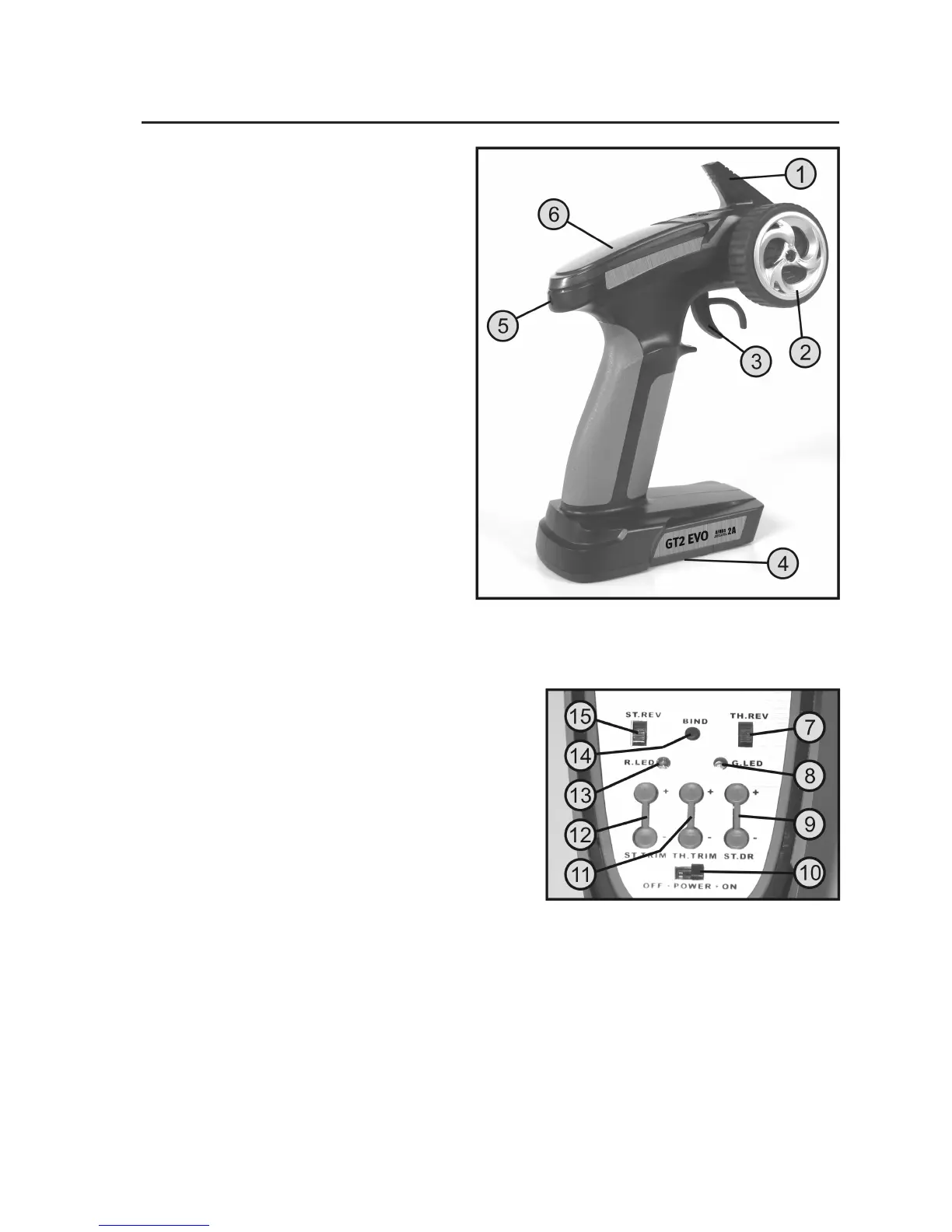 If you fold the operating panel cover (6) upwards, you will gain access to the other transmitter operating elements: