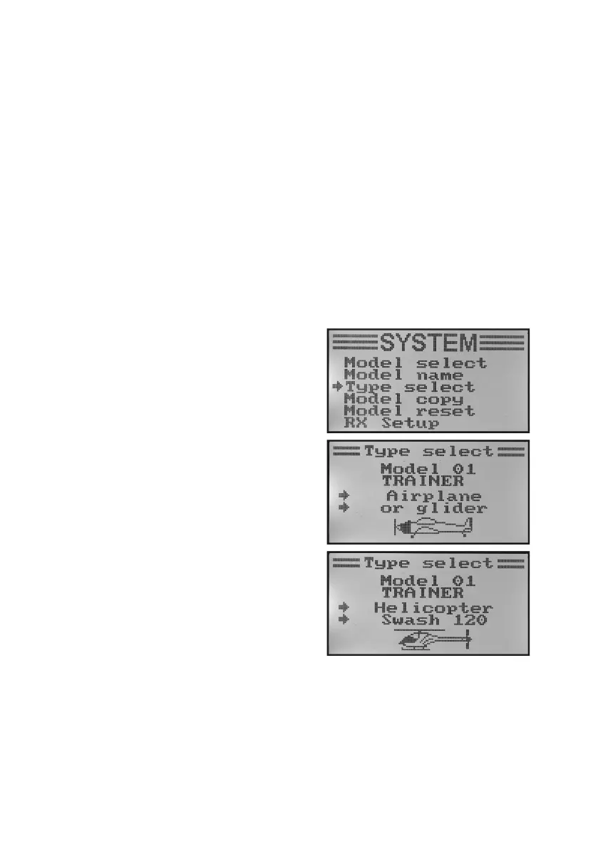it is necessary to enter the right model type during programming. You can pick between model planes „Airplane or