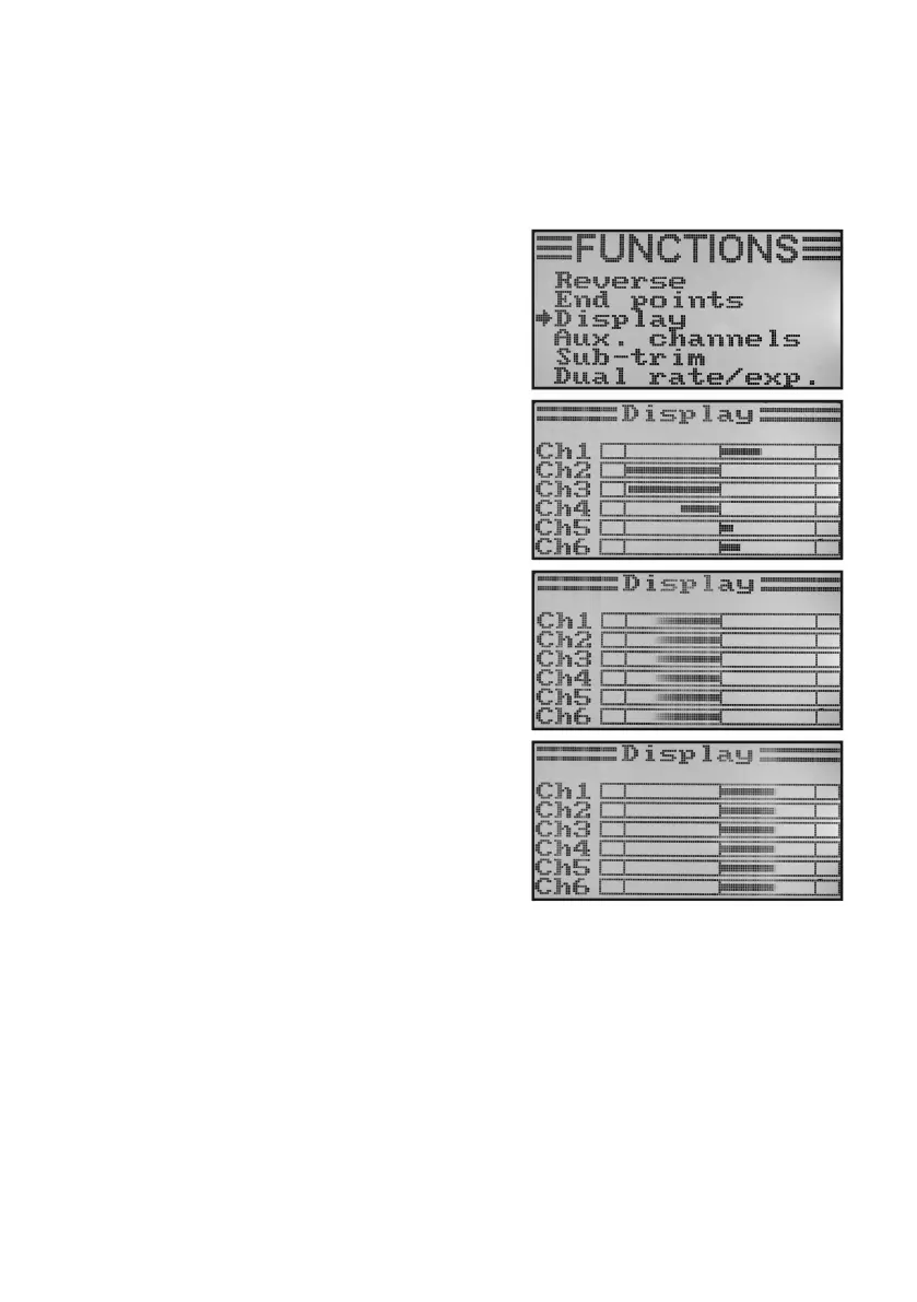 In this menu you can graphically display the servo control settings for all 6 channels and simultaneously check the