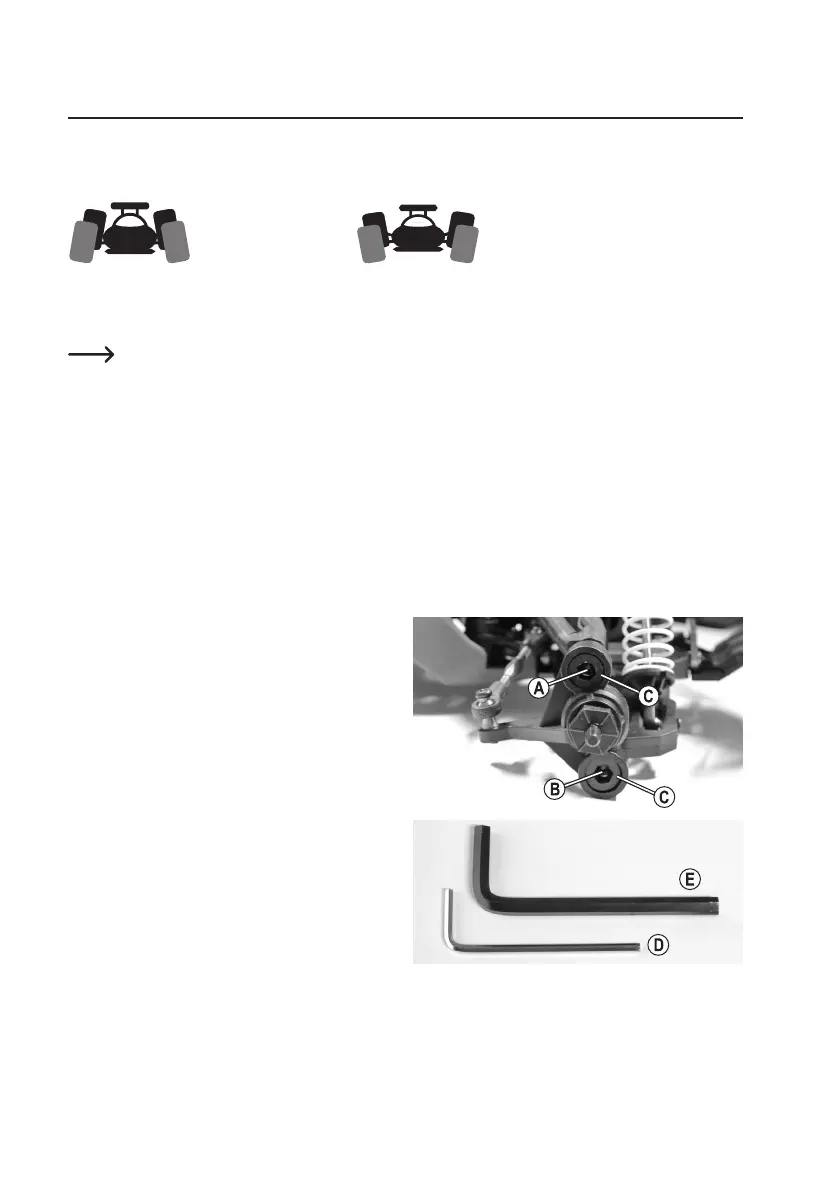 tussen negatieve en positieve wielvlucht aan te geven. Voor de instelling van het modelvoertuig mogen