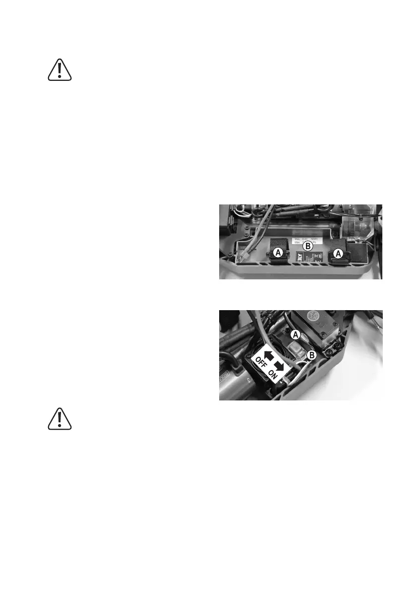 Achten Sie darauf, dass die Kabel nicht in den Antrieb des Fahrzeugs bzw. in die Lenkmechanik gelangen können.