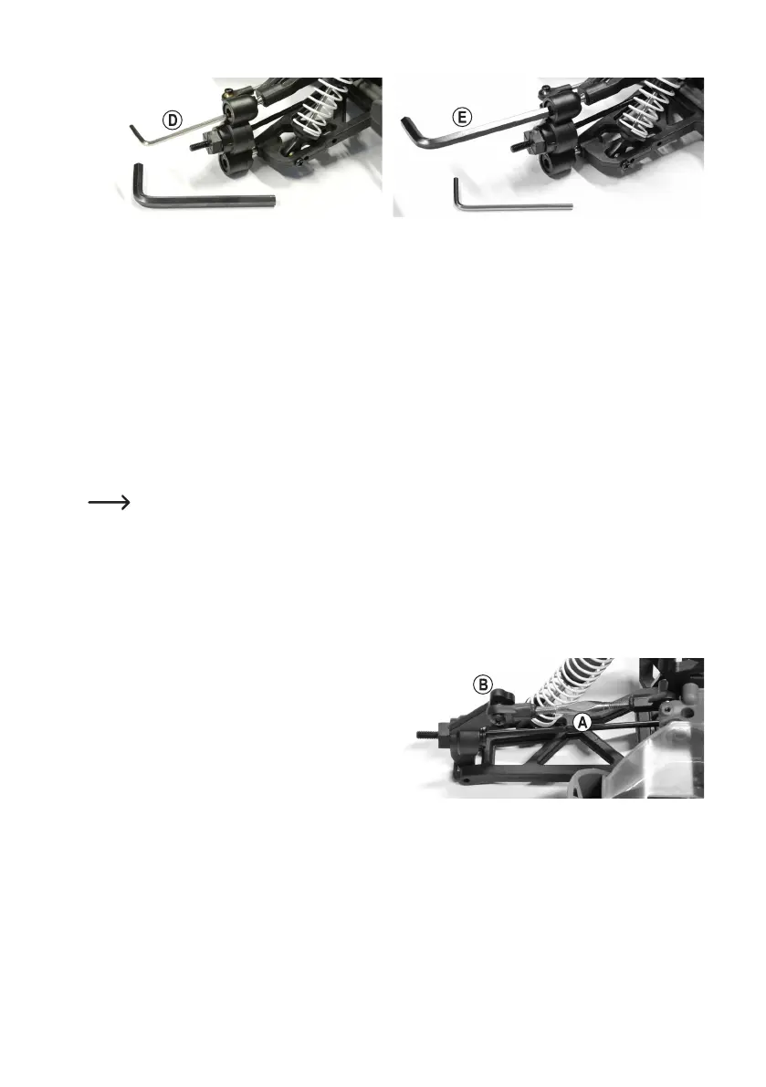• Pour régler le carrossage, faites pivoter les vis à tête sphérique métalliques avec une petite clé à six pans creux