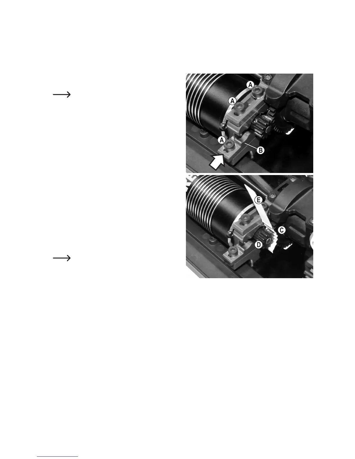 • Push the motor bracket in the direction of the arrow, as