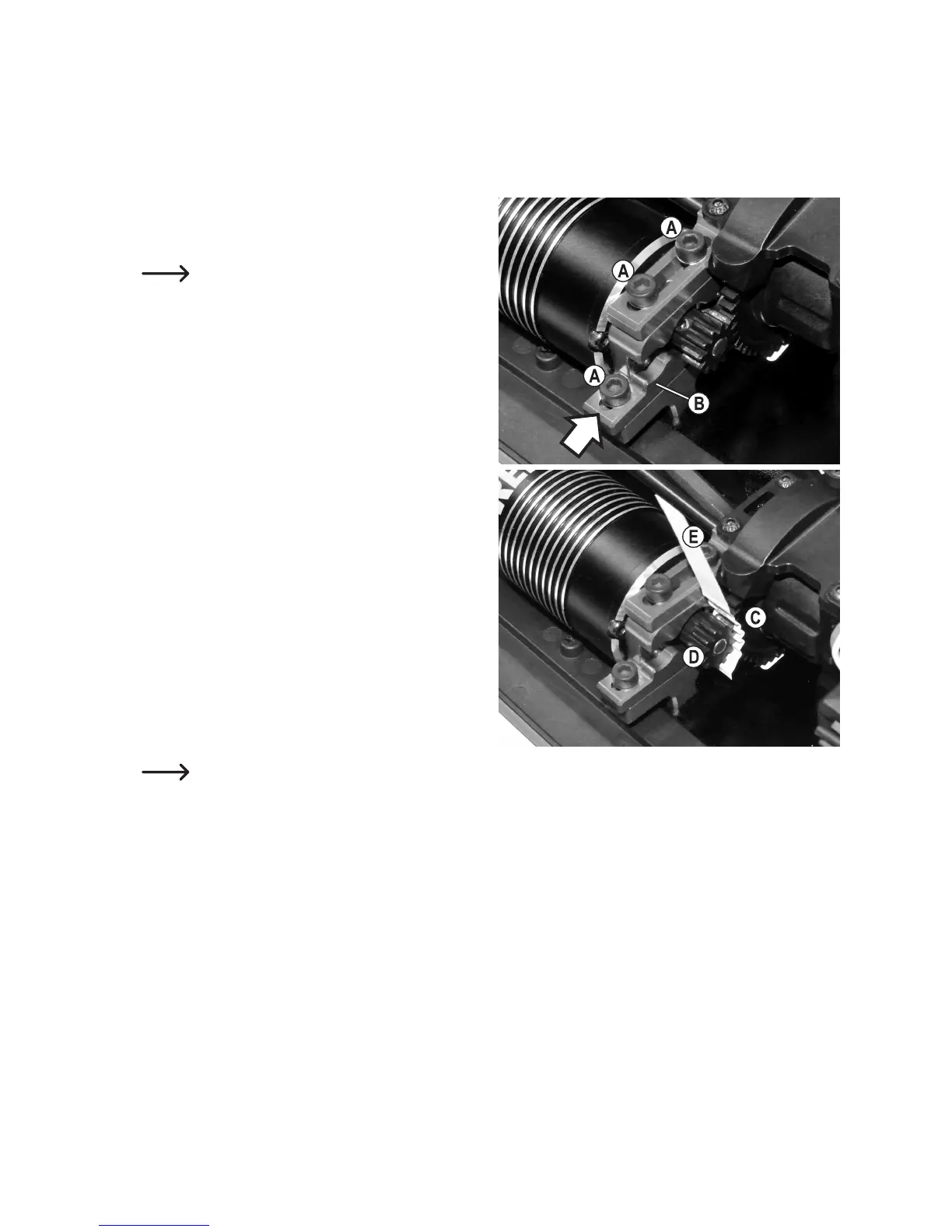 Par contre, si le pignon du moteur s'appuie contre la roue dentée principale (fonctionnement sans jeu