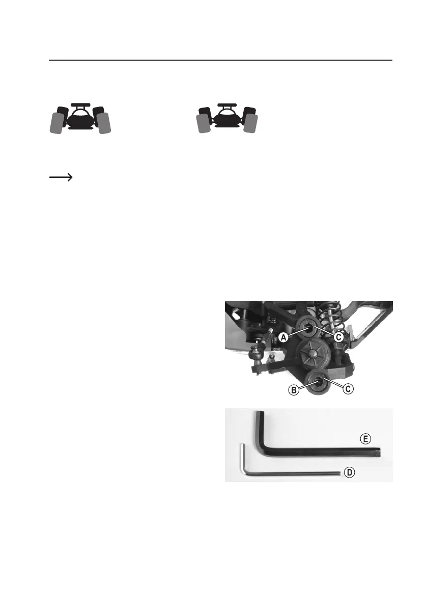 De instelling van de wielen op de beide afbeeldingen boven is overdreven weergegeven, om het verschil