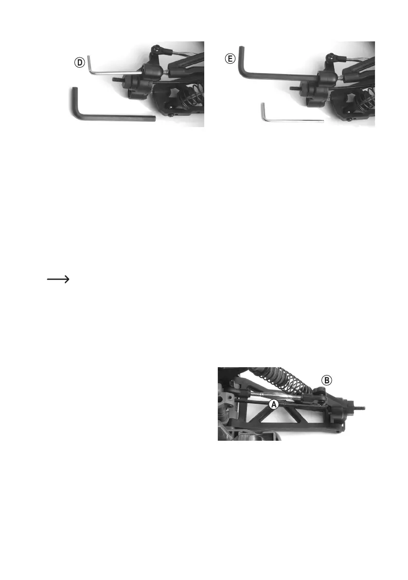 • Um den Radsturz zu verstellen, verdrehen Sie die Metall-Kugelkopfschrauben mit einem kleinen 2,5 mm-Sechs-
