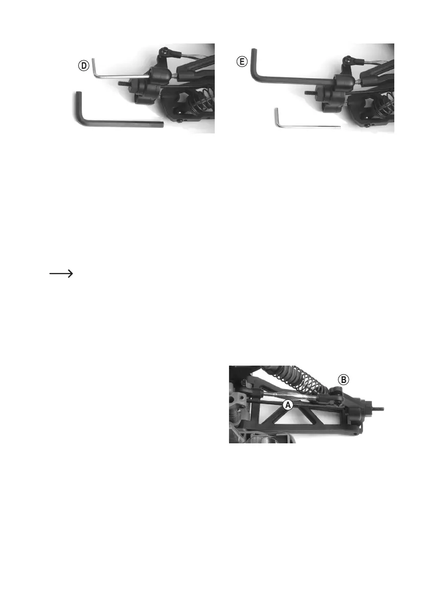 • Toadjustthecamber,useasmall2.5mmhexkey(D)totwistthemetalballscrews.