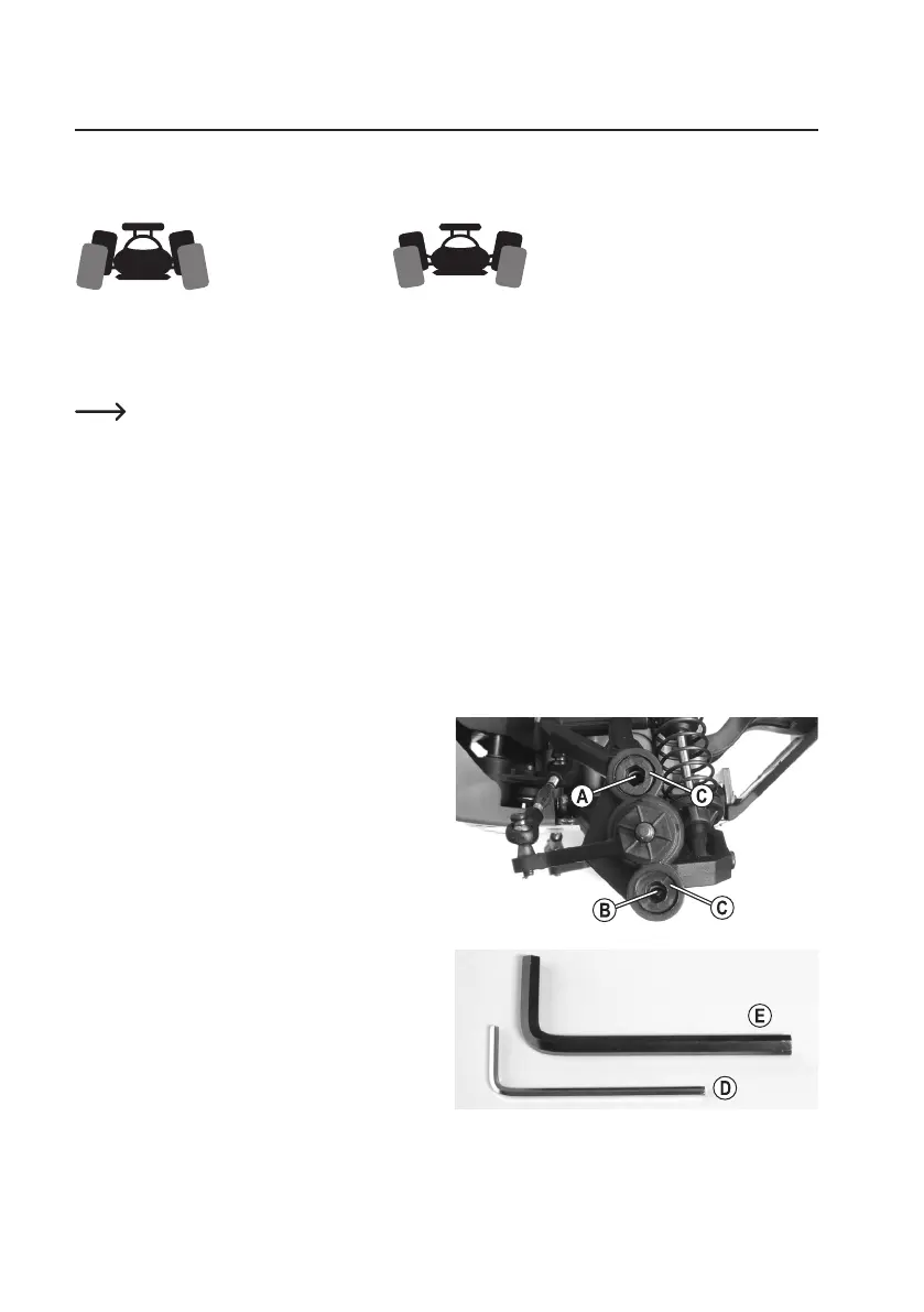 entre un carrossage négatif et positif. Pour le réglage sur le modèle réduit, le carrossage ne sera évidem-
