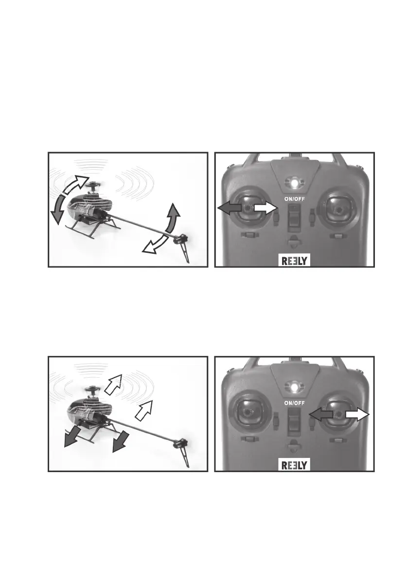 Mit Hilfe der Roll-Funktion können Sie den Modellhubschrauber seitlich nach rechts und links bewegen (siehe Bild