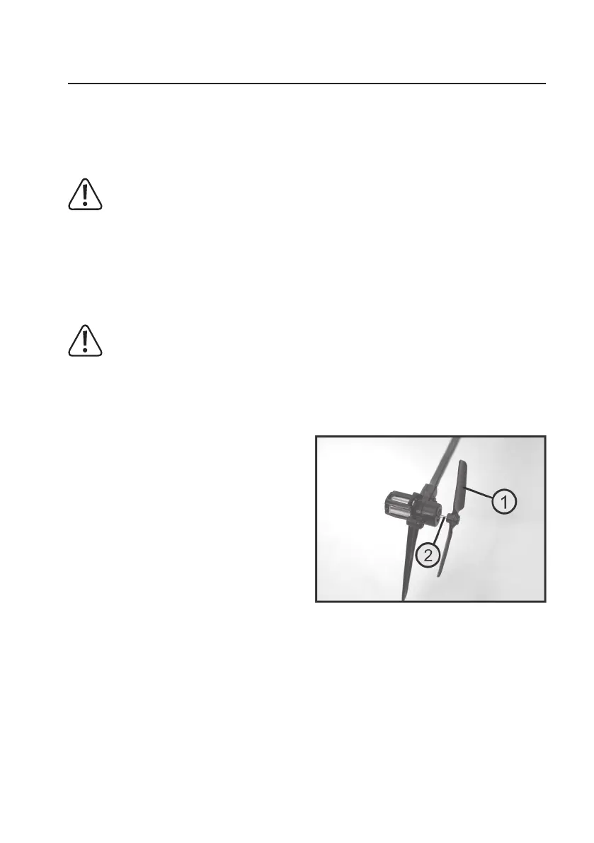 Fliegen Sie den Modellhubschrauber auf keinen Fall mit defekten Rotorblättern, denn die dadurch entste-