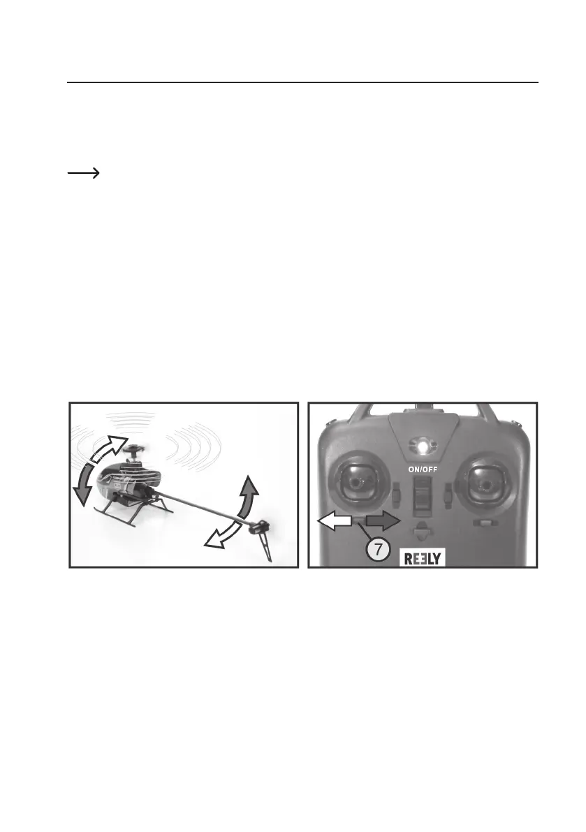 If the fuselage nose turns to the left, push the trim button for the tail function to the right (see dark arrows in Figure 14).