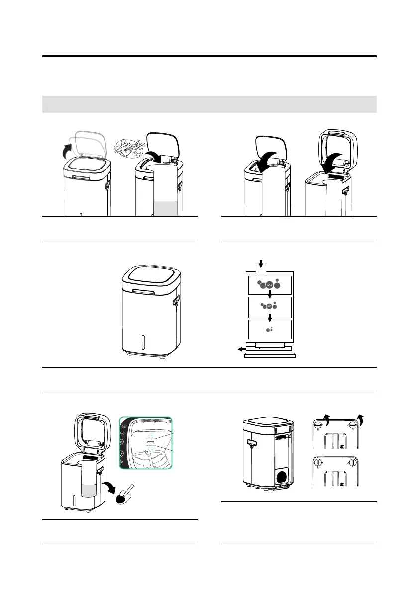 Keep the lid open and pour the food waste. When the lid is closed, the machine automatically