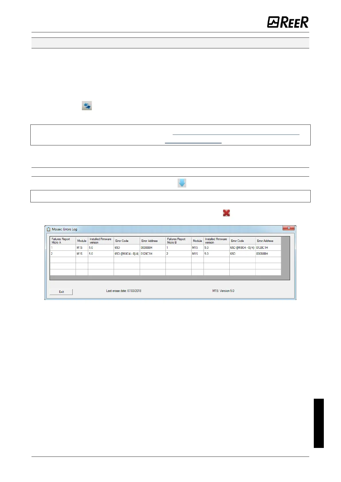 sent to Mosaic or from the date of error log cancellation (icon ).