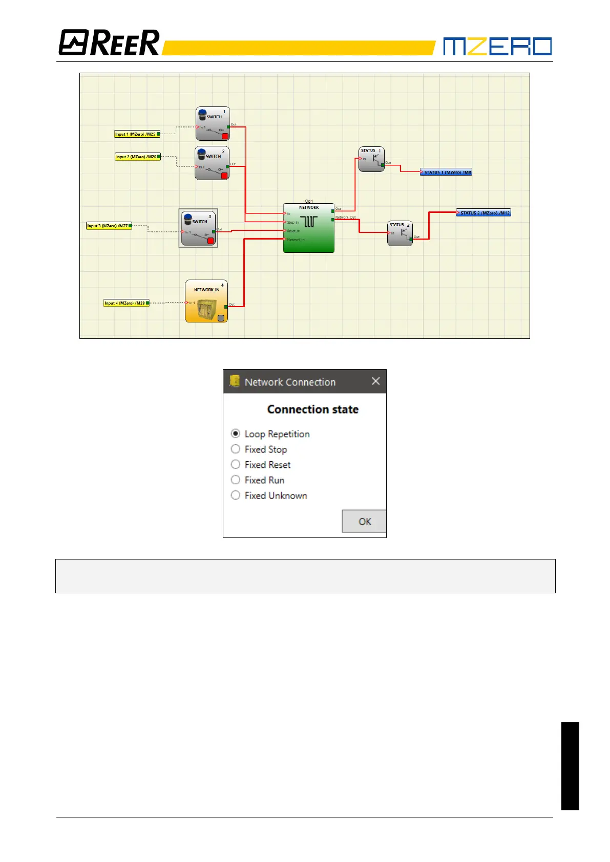 The keys for enabling block outputs are shown at the top, an example of a pop-up window