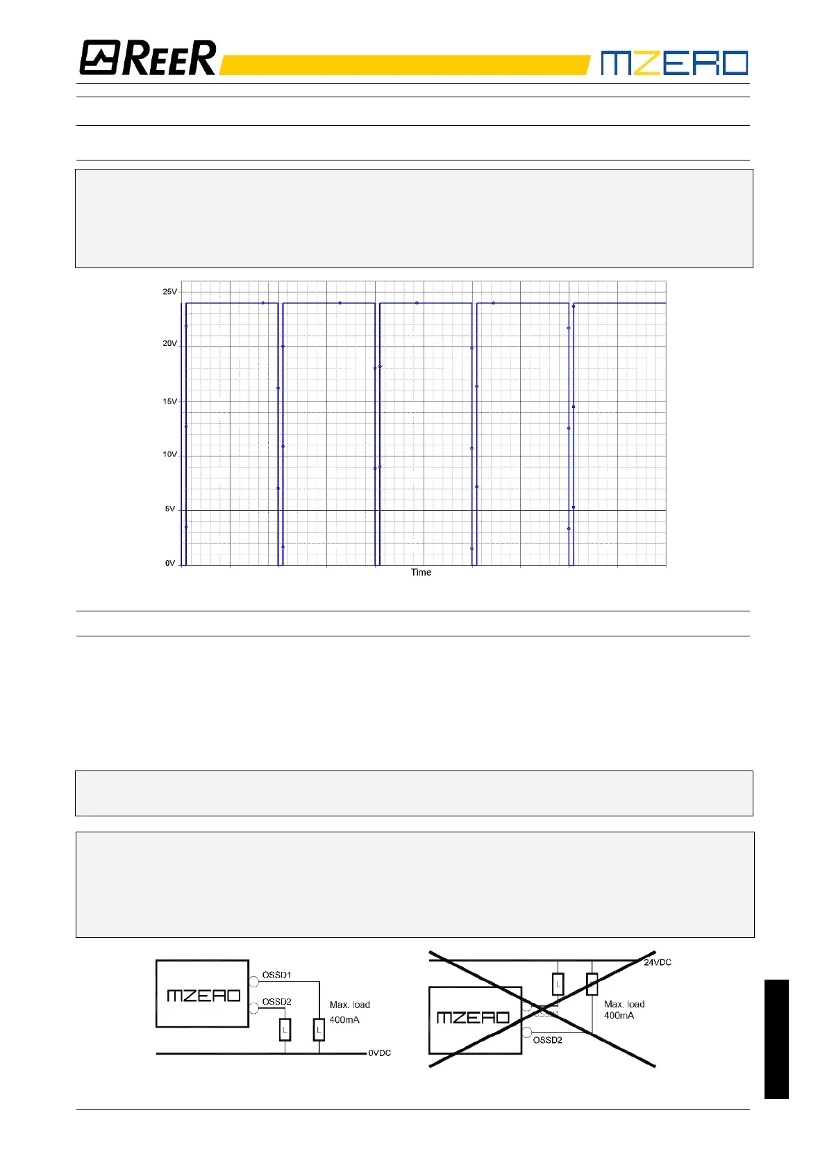 short time (< 120 µs) each OSSD output is forced to 0VDC and if the test results are not