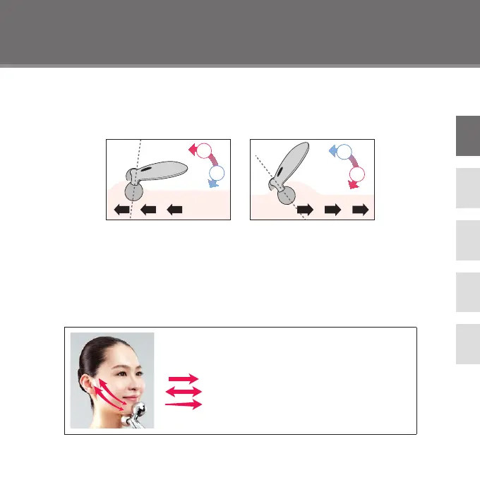ローラーが肌を吸い上げる強さは、ハンドルを持つ角度で調整できます。