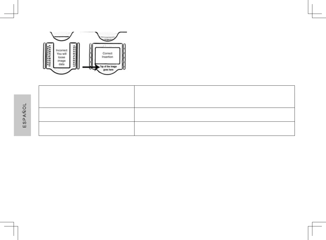 Introduzca el soporte de negativos en la unidad, con las flechas hacia arriba, su imagen