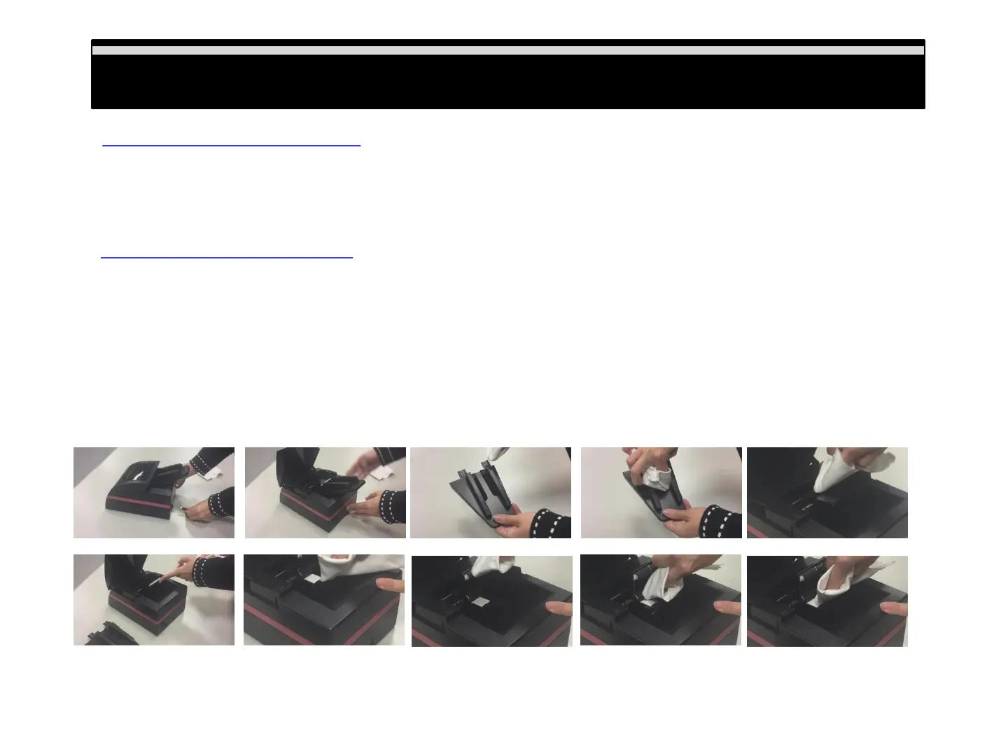 3. Lift open the cover to access the inside, Wipe upper external roller to remove dust