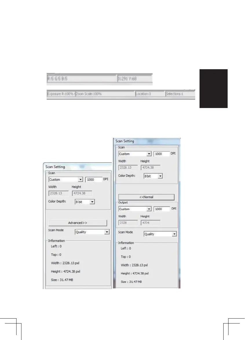 Mode Avancé [ex : II] permet d’entrer le paramètre de sortie du scanner, la résolution