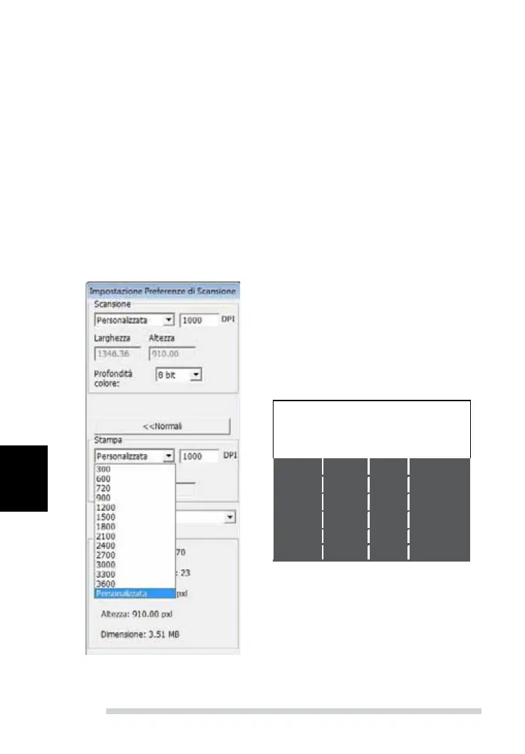 La risoluzione di scansione predenita è 1000 dpi; le opzioni di risoluzione